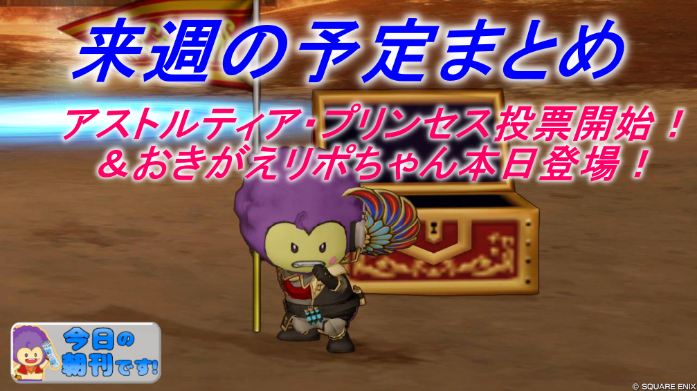 今日の朝刊は来週の予定まとめ! アストルティア・クイーン総選挙!が中心となる1週間となりそうな予感!?