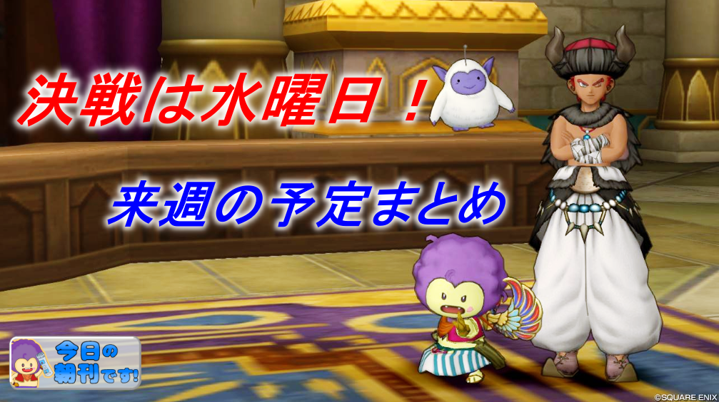 今週は水曜日に更新などが集中しているので、それまでを目安に週課などは進めた方が良さそうです。