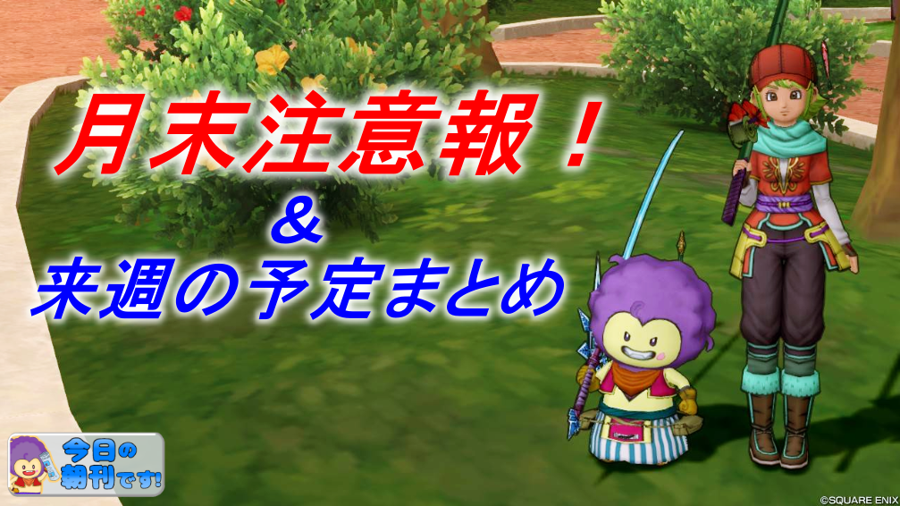 今週は週末に月末月初が絡んできますが、週末までには少し期間が開くので週課クリアも含めてのんびり過ごしていけそうですね!