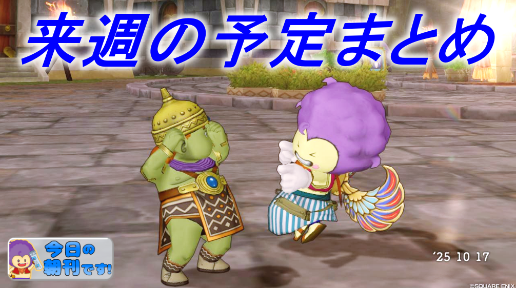 今日の朝刊では来週の予定をまとめていきたいと思います。