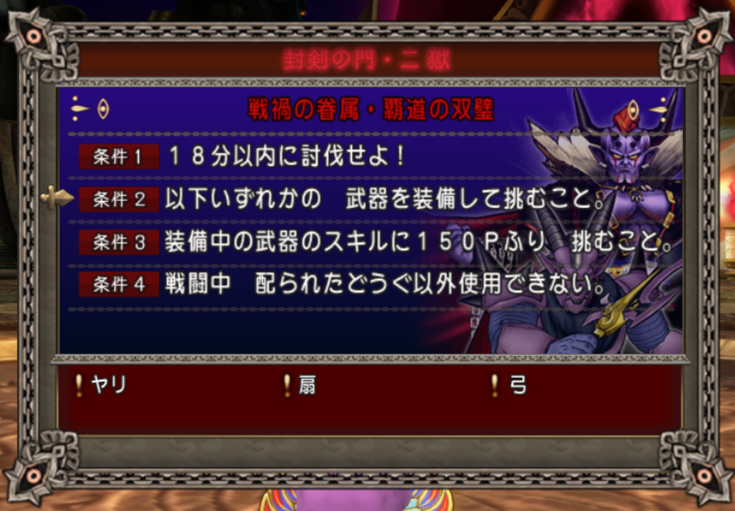 参加条件 : ヤリ・扇・弓装備(武器スキル150P以上)