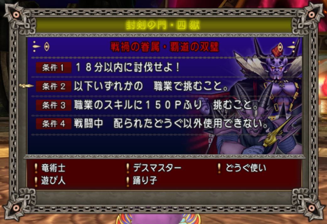 参加条件 : 竜術士・デスマスター・どうぐ使い・遊び人・踊り子(職業スキル150P以上)