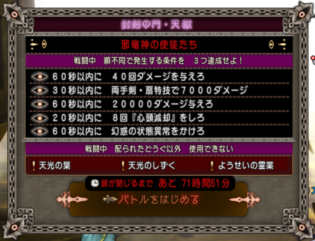 邪神の宮殿・天獄は現在開放中なので来週の開放はなさそうです。おそらく邪神の宮殿更新日くらいまでは大きな動きはないのではないかと予想しています。