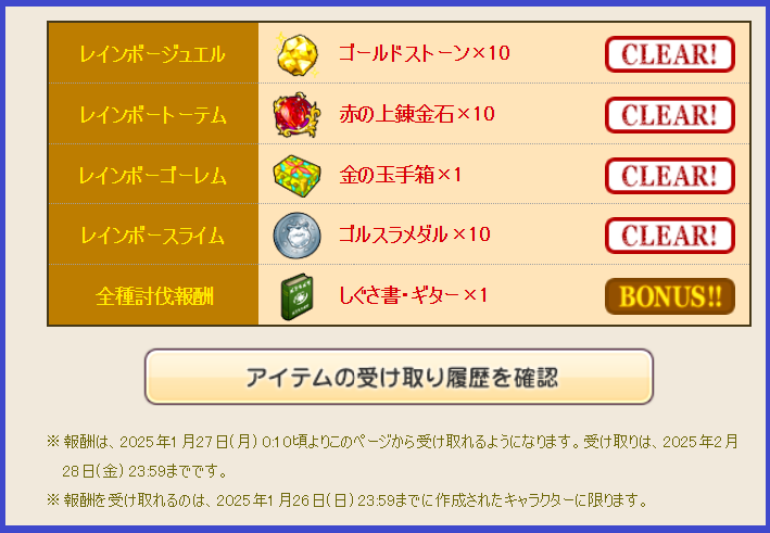 1ヵ月に1回更新の貴重な入手機会です。忘れずに報酬をゲットしておきたいところです。(特に「天啓の石」は他に入手方法がないので貴重です)