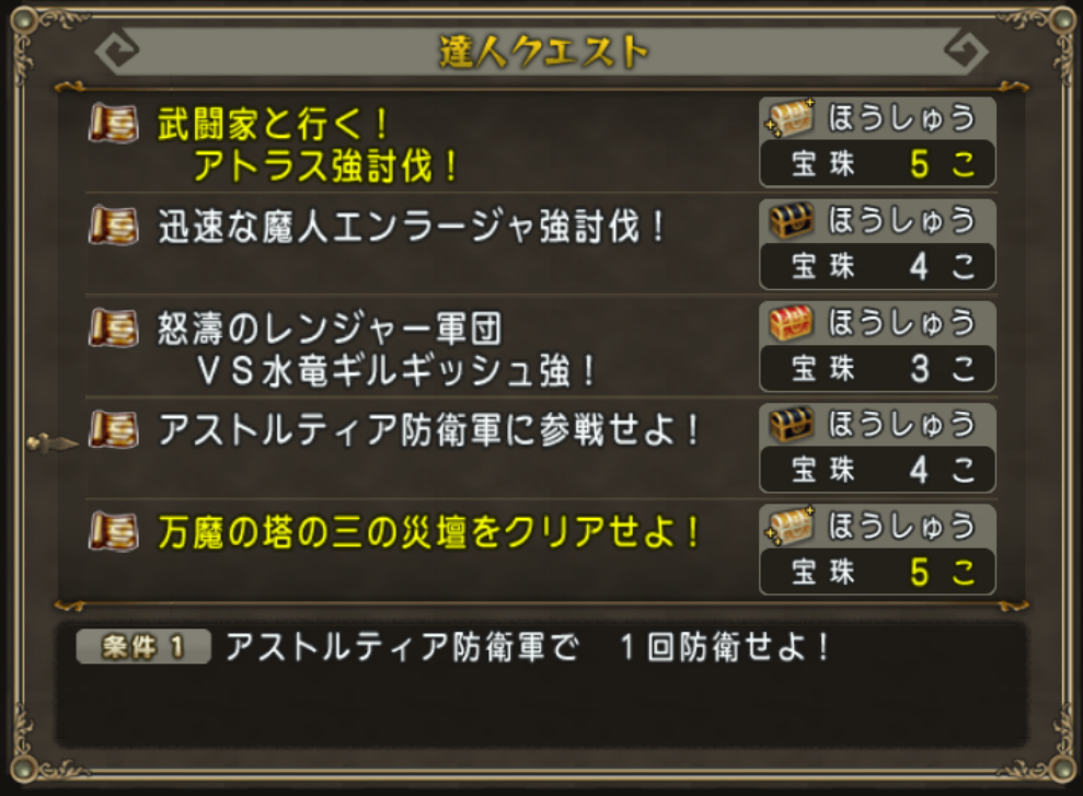 5個報酬のお題は「万魔の塔の三の災壇をクリアせよ!」は無難かな??