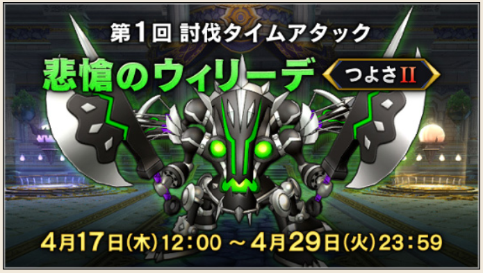 悲愴のウィリーデ 強さⅡ 討伐タイムアタックが開催されます。