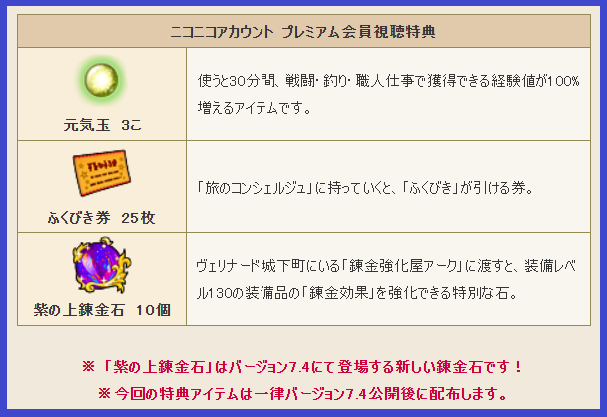 超ドラゴンクエストⅩTVの視聴特典に・・・まさかの「紫の上錬金石」が登場しました!レベル130装備の錬金効果の強化できる錬金石でして、この錬金石はバージョン7.4で登場する錬金石とも明記されています!!