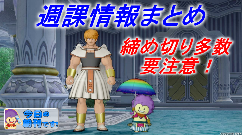 今週は15日更新(火曜日)があるので、そこまでを目安に週課などを進めて行きたいと思っていますが基本的に何かに追われるような週ではないと思うので(ドラクエⅩ内でのイベントスタートはないので!ウィリーデTAに本格参戦される方は別!笑)のんびりと過ごしていきたいと思っています。