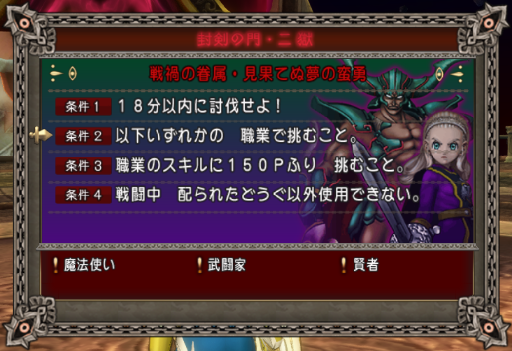 参加条件 : 魔法使い・武闘家・賢者(職業スキル150P以上)