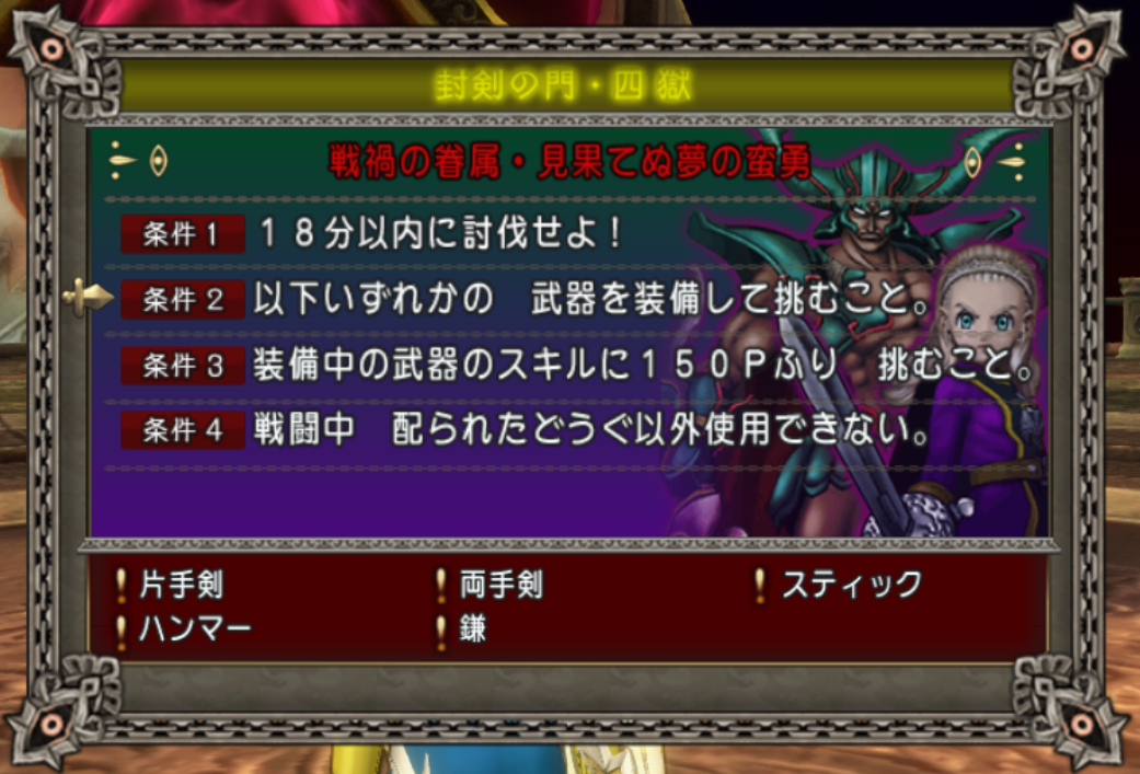 参加条件 : 片手剣・両手剣・スティック・ハンマー・鎌装備(武器スキル150P以上)