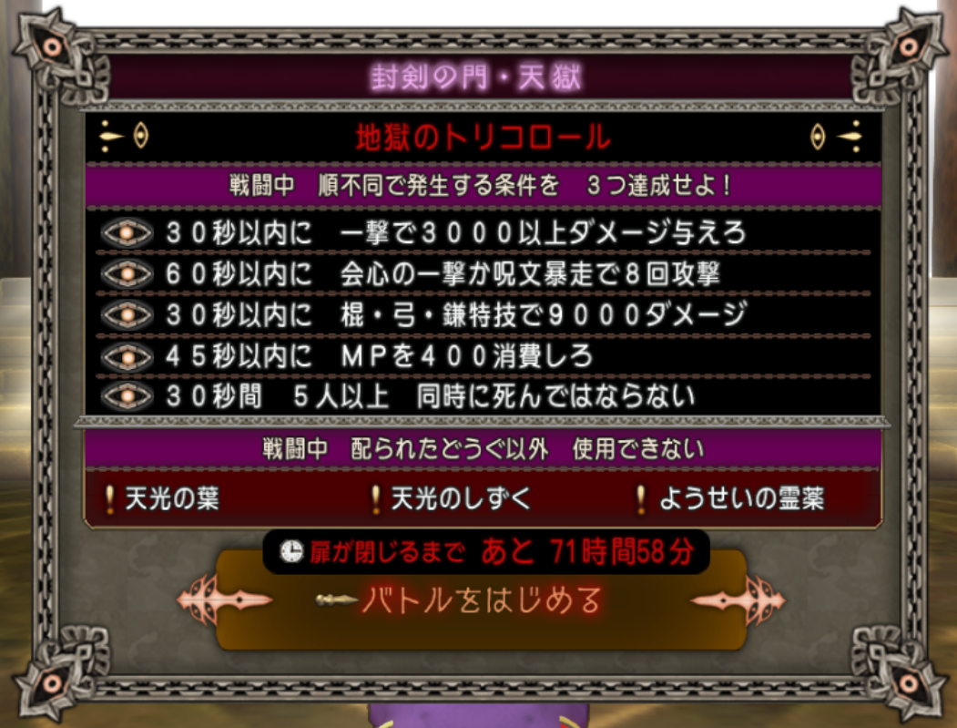 特に達人クエストのお題が三獄に固定されているので、天獄の終了後の点滅状態が今から気になっています(笑)