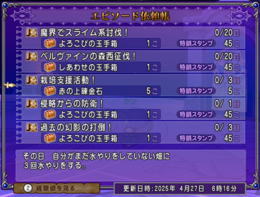錬金石が報酬のお題は「栽培支援活動!」です。