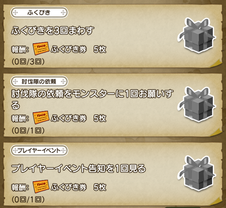 「ふくびきを3回まわす」は明日4月28日5:00にツールふくびき賞品が更新されるので、その後にクリアを目指すのもアリだと思います。