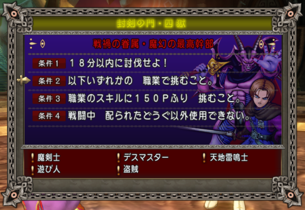 参加条件 : 魔剣士・デスマスター・天地雷鳴士・遊び人・盗賊(職業スキル150P以上)