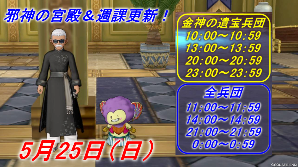 本日5月25日(日曜日)は週課更新日&邪神の宮殿更新日です。