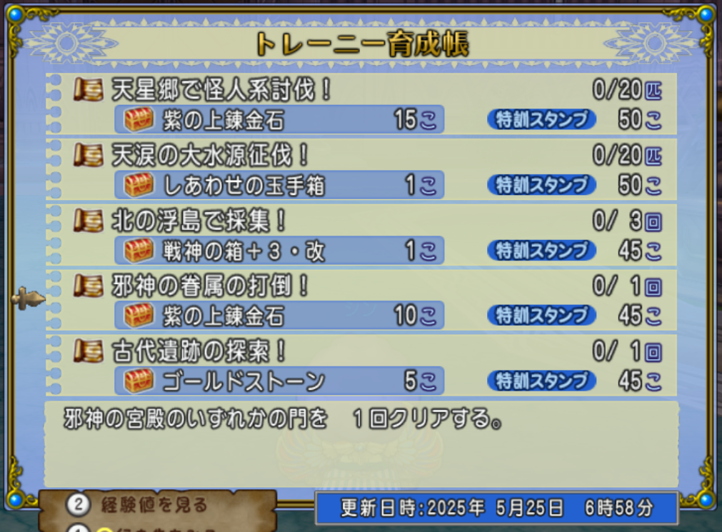 オートマッチングの都合上、邪神の宮殿は急いだ方が良さそうですが、基本的に今週はのんびり過ごせそうな1週間なので(5月27日のドラクエの日に何か強烈な発表がなければですが 笑)週課自体は慌てる必要なないと思っています。