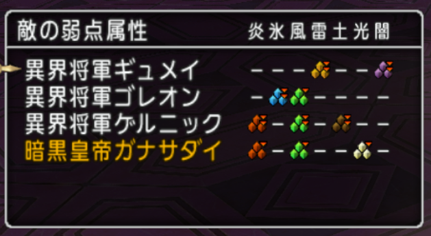 欲しいダメージ減関係が多いのでキラキラポーン、プラズマリムーバーなどで対応するのもありだと思います。括弧内は使用頻度が低い(途中で登場するモンスターが使用)状態異常耐性です。