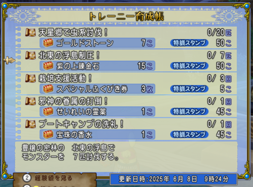 北東の浮島には虫系モンスターの生息は確認できなかったので(豊穣の密林には生息しているのですが・・・)「天星郷で虫系討伐!」とは別々に進める事になりそうです。