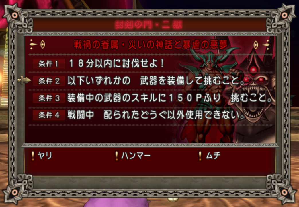 参加条件 : ヤリ・ハンマー・ムチ装備(武器スキル150P)