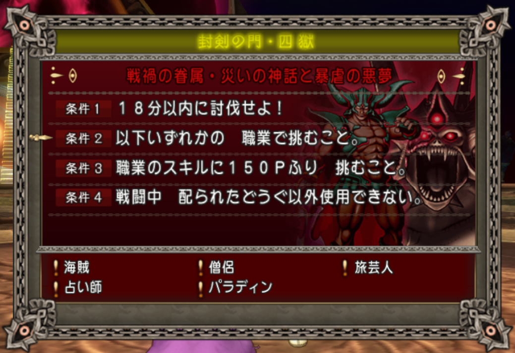 参加条件 : 海賊、僧侶、旅芸人、占い師、パラディン(職業スキル150P以上)