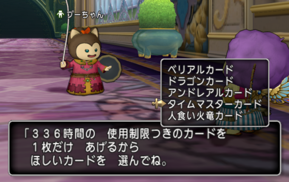 画像はプーちゃんからプレゼントしてもらえるカード一覧です。