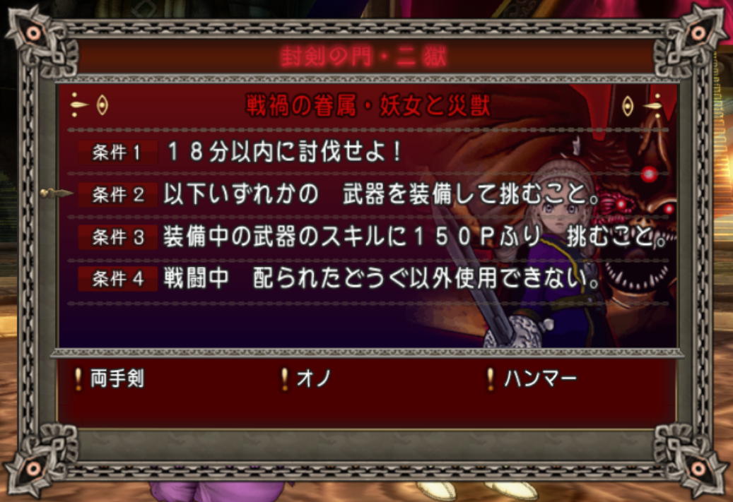 参加条件 : 両手剣・オノ・ハンマー装備(武器スキル150P以上)