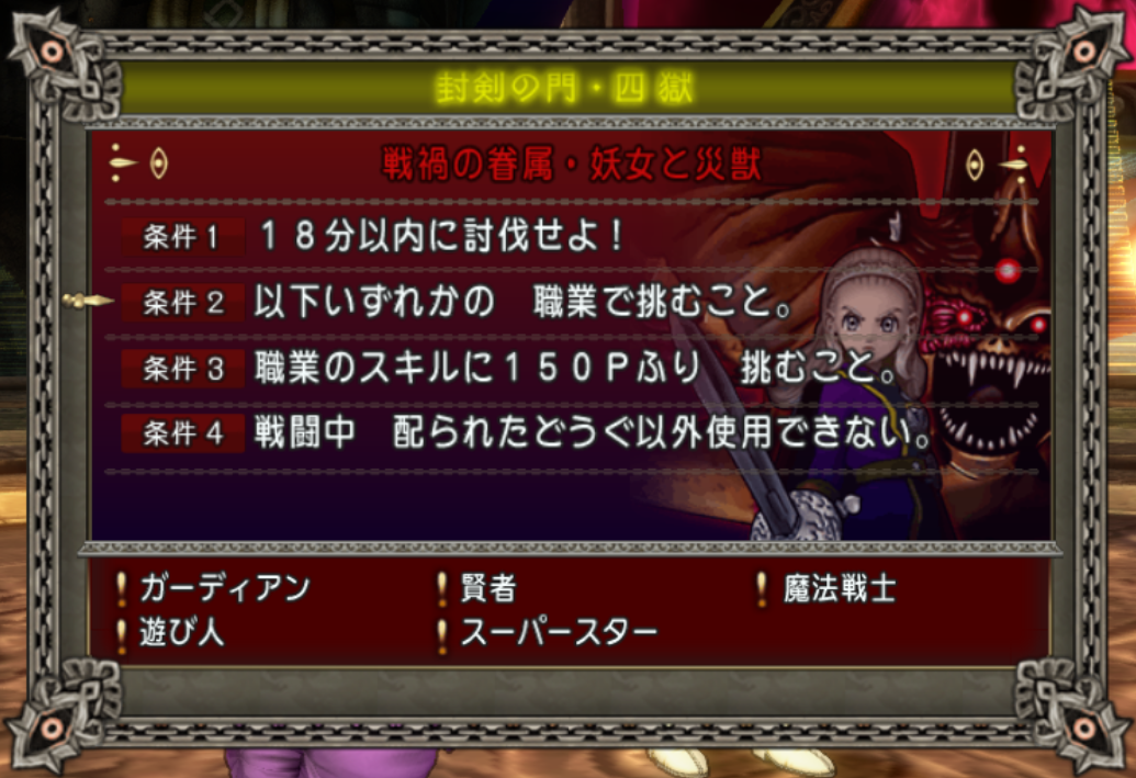 参加条件 : ガーディアン・賢者・魔法戦士・遊び人・スーパースター(職業スキル150P以上)