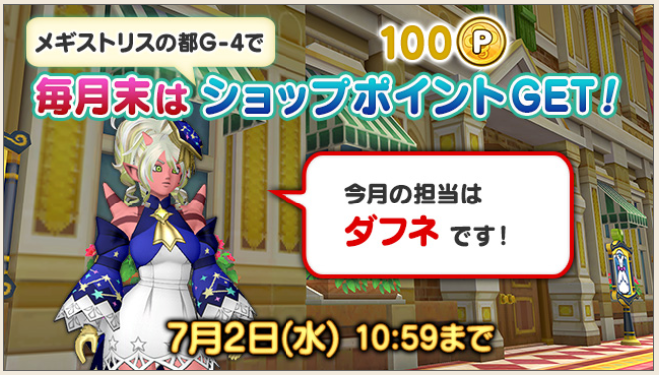 メギストリスの都・おしゃれストリートにショップ店員ダフネさんが登場中です。