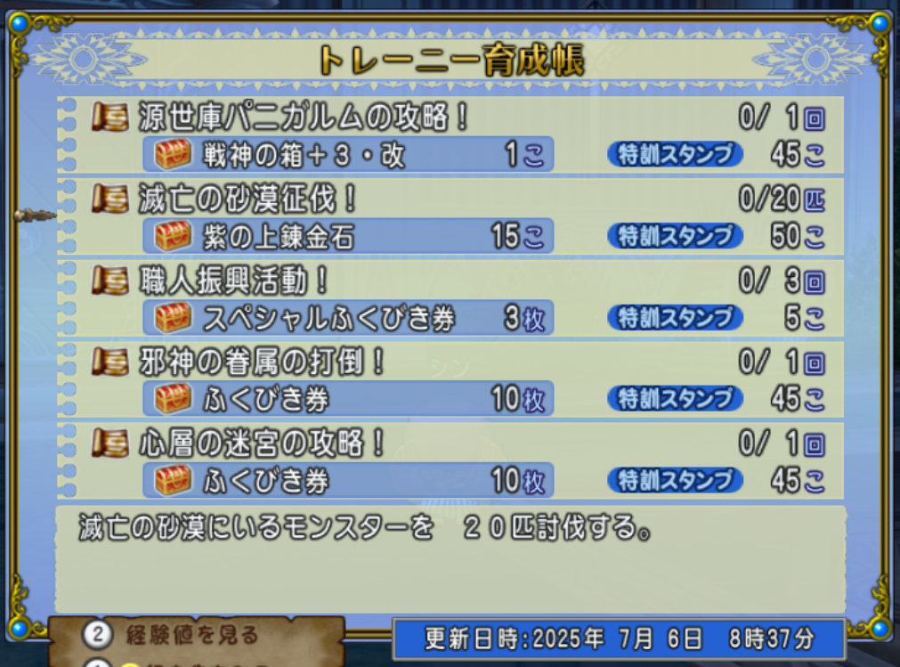 邪神の宮殿・天獄の点滅は6日朝の時点でゼロです。いくつかの週課に邪神の宮殿関係のお題がありますが、すぐに天獄開放ということはなさそうです。
