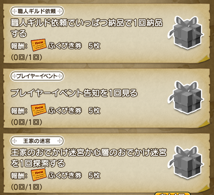 「王家のおでかけ迷宮か心層のおでかけ迷宮を1回探索する」のお題はトレーニー育成帳のお題とも重複しているので、週課更新後に挑むのが良さそうです。