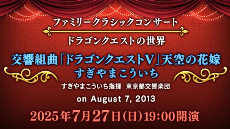 今回は初回ということで すぎやまこういち先生指揮ファミリークラシックコンサート交響組曲「ドラゴンクエストⅤ」天空の花嫁 が配信されます。