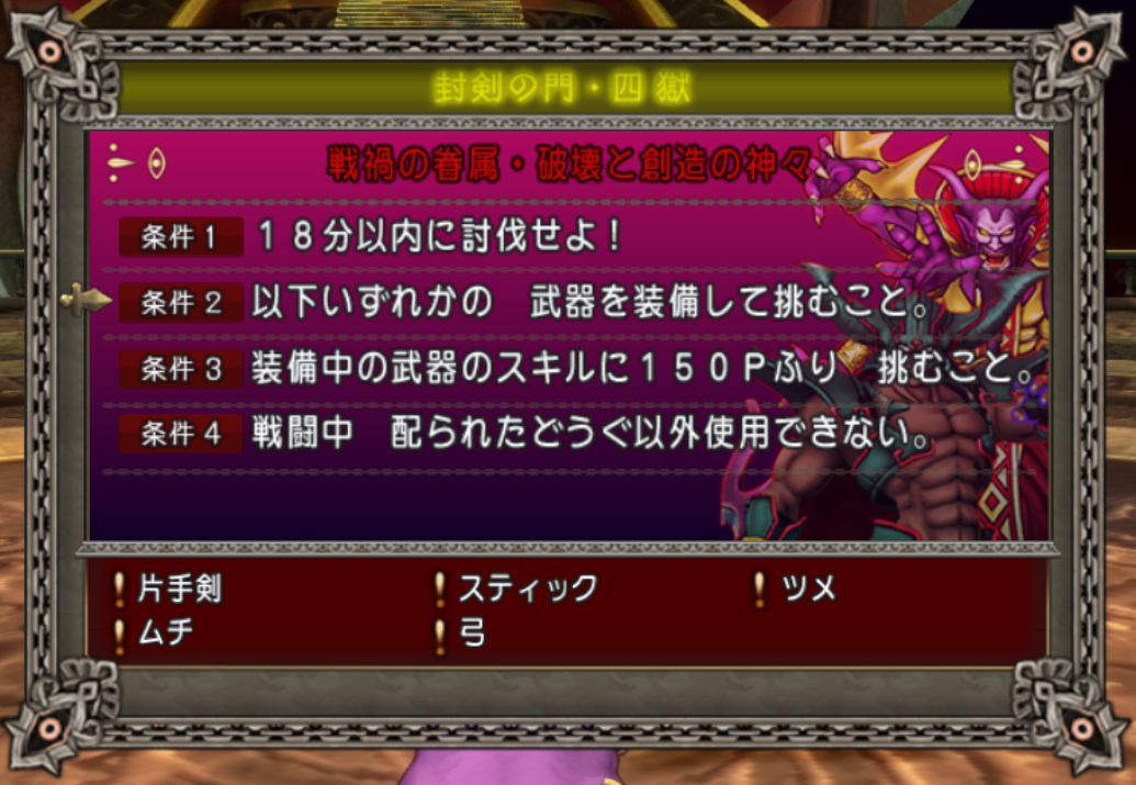 参加条件 : 片手剣・スティック・ツメ・ムチ・弓装備(武器スキル150P以上)