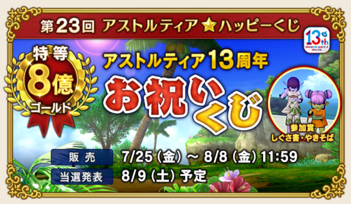 おきがえリポちゃんと同じく12時からは「アストルティア★ハッピーくじ」の販売がスタートします。