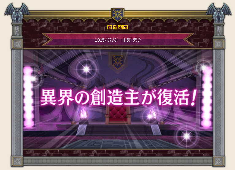 邪神の宮殿・天獄は少しだけ点滅が進んでいました。今週の週課には邪神の宮殿のお題もあります。すぐに開放されるという事はなさそうですが、点滅状態がさらに進む可能性はありそうです。