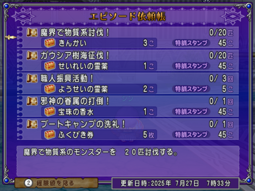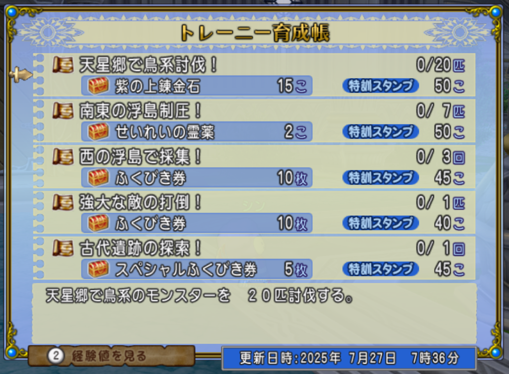 本日7月27日(日曜日)は週課更新日です。