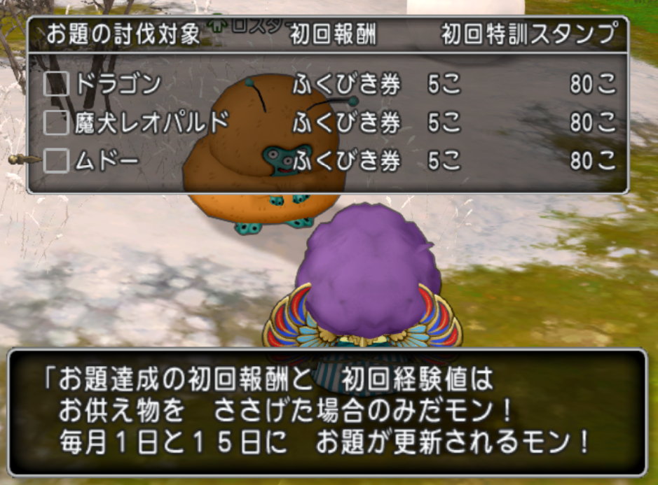 直近に登場したコインボスの1世代前の魔犬レオパルド、ドラゴンは貴重ですし、最近にロスターさんのお題に登場したムドーもありがたいです。