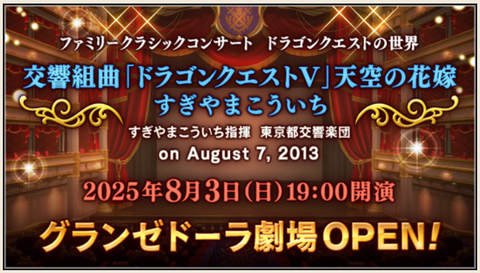 すぎやまこういち先生指揮の 交響組曲「ドラゴンクエストⅤ」天空の花嫁 が上演されます。