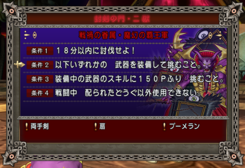 参加条件 : 両手剣・扇・ブーメラン装備(武器スキル150P以上)