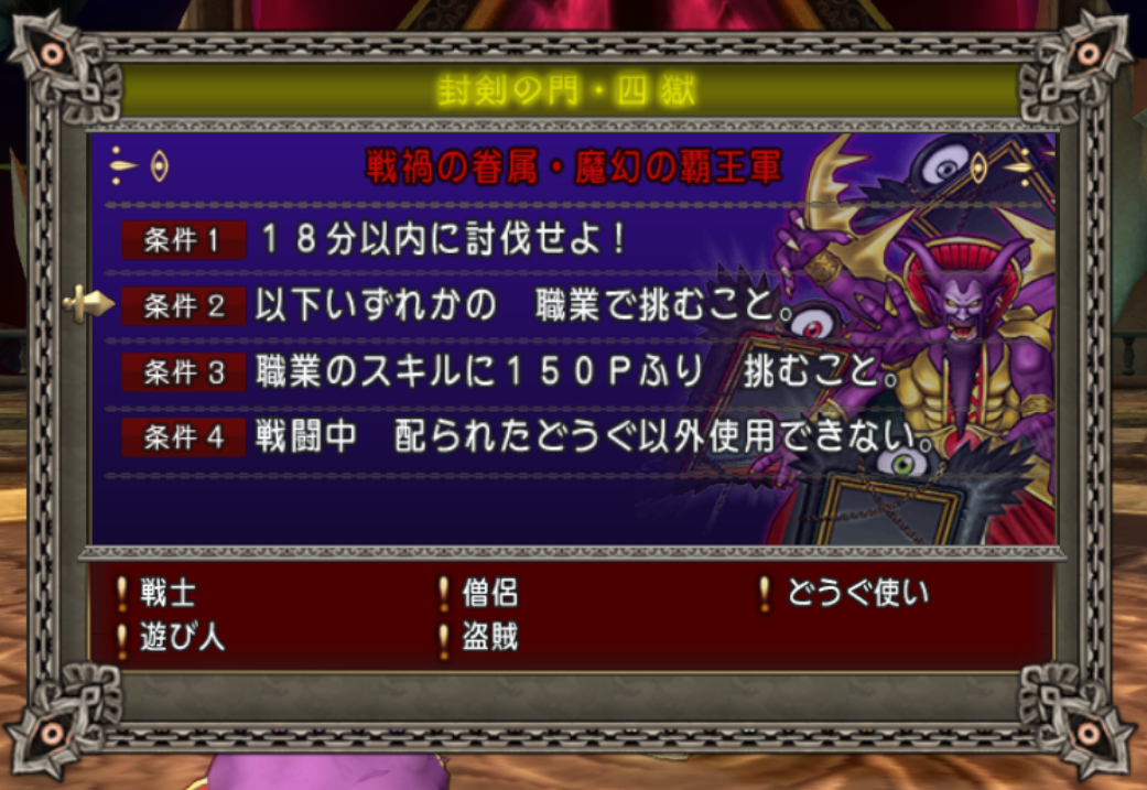 参加条件 : 戦士・僧侶・どうぐ使い・遊び人・盗賊(職業スキル150P以上)