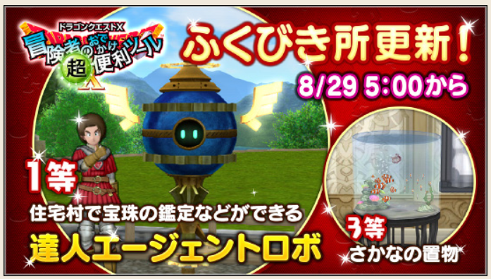 8月29日(金曜日)5:00から おでかけ超便利ツールのふくびき所の賞品が更新されます。