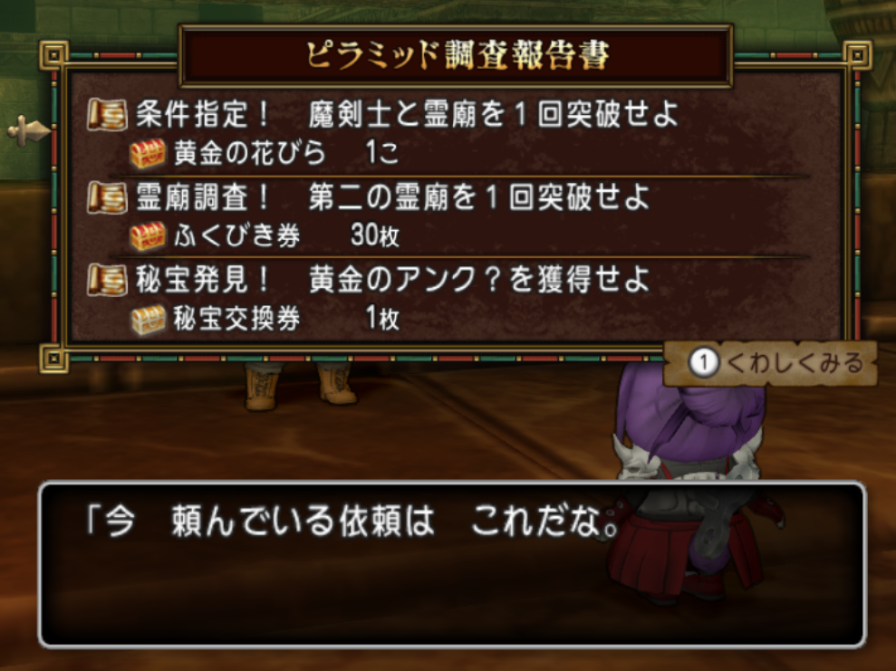 ピラミッドに行かれた際には霊廟に挑戦する前に「古物研究家エンチェ」さん(入口付近)から調査依頼を受けてから行くと良さそうです。