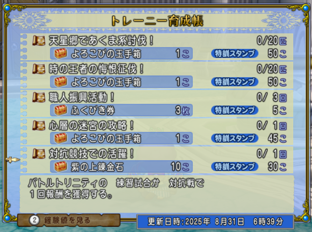 ・達人のポイント→ふくびき券100枚の交換(9月1日6:00更新)