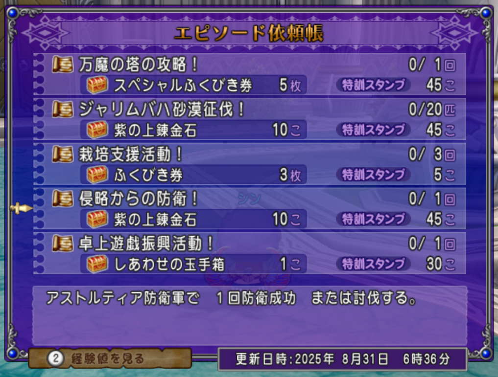 エピソード依頼帳のお題(錬金石が報酬)とも重複している「アストルティア防衛軍に参戦せよ!」は個人的にオススメです。