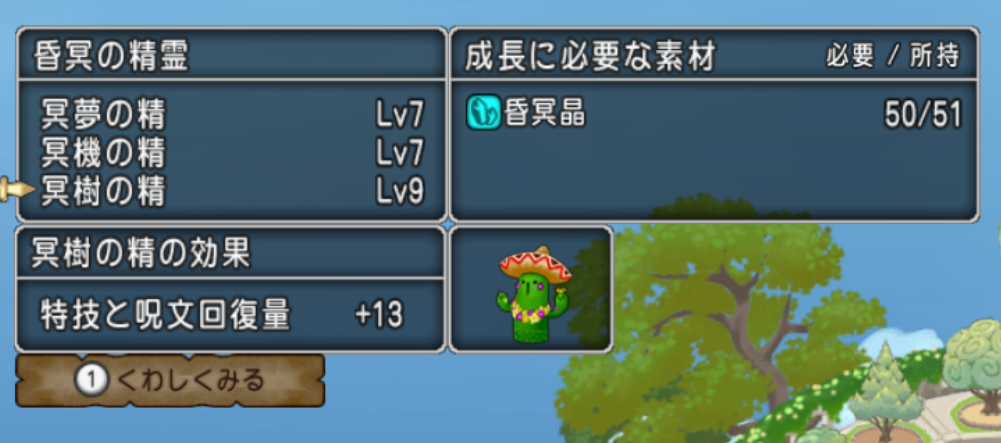 ちなみに昏冥の精霊のレベルを7→8に上げるには昏冥晶40個、8→9は45個、9→10は50個必要です。