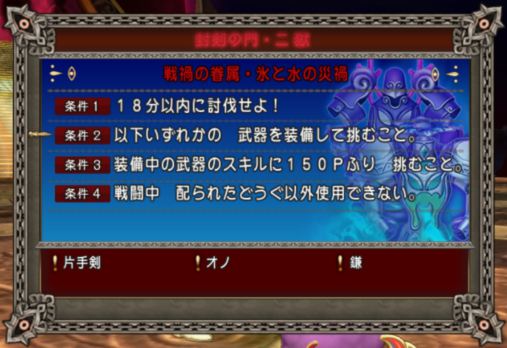 参加条件 : 片手剣・オノ・鎌装備(武器スキル150P以上)
