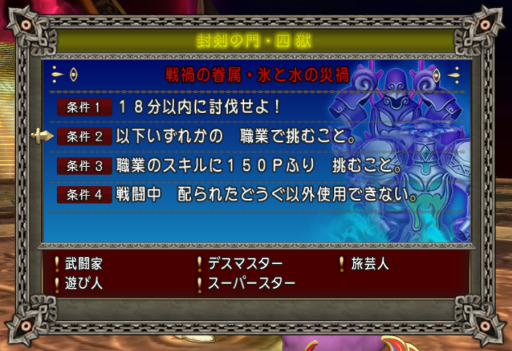 参加条件 : 武闘家・デスマスター・旅芸人・遊び人・スーパースター(職業スキル150P以上)