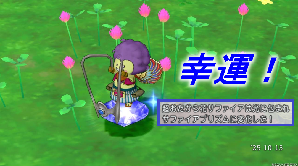 昨日も深く考えずに超おたから花サファイアを使用していると・・・見慣れないアイテムがっ!?サファイアプリズムです!