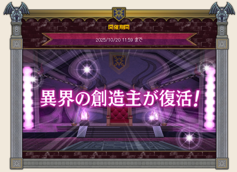 フェスタ・インフェルノ、異界の創造主は現在開放中なので来週開催の可能性は低そうです。