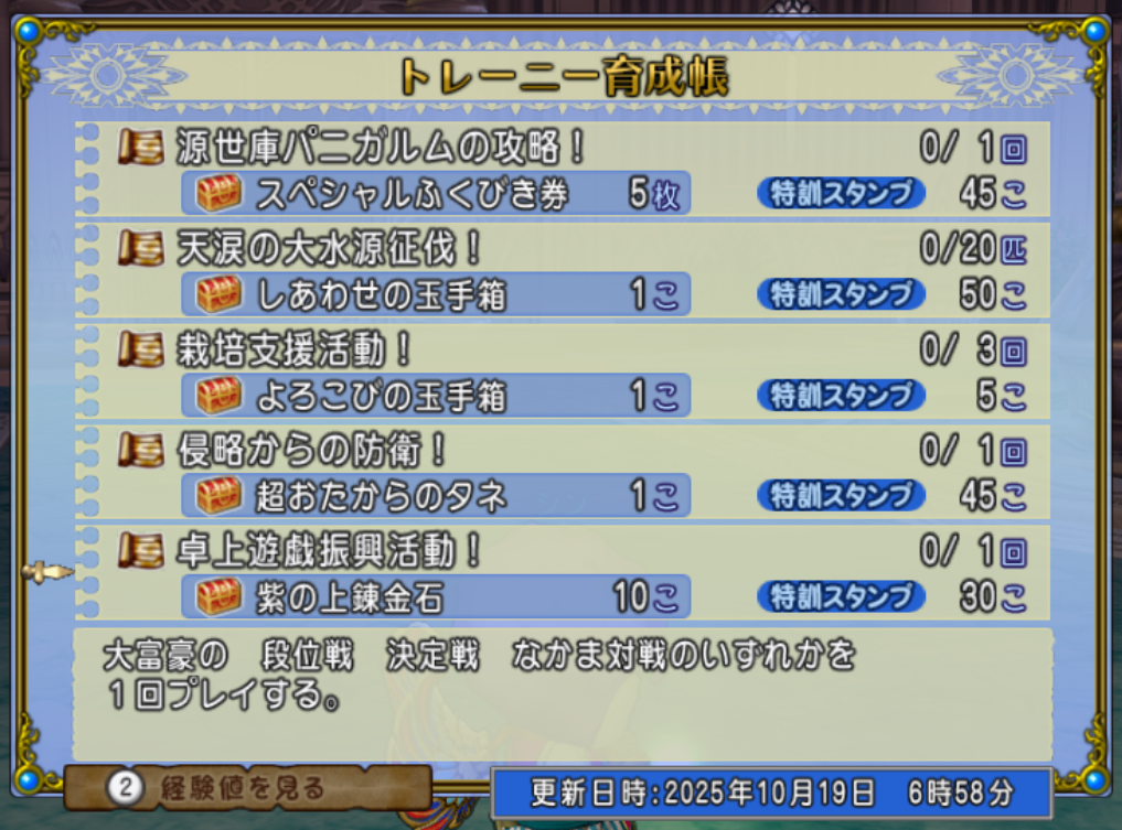 どれも簡単にクリアできるお題なので忘れずに全てのお題をクリアしておきたいです。