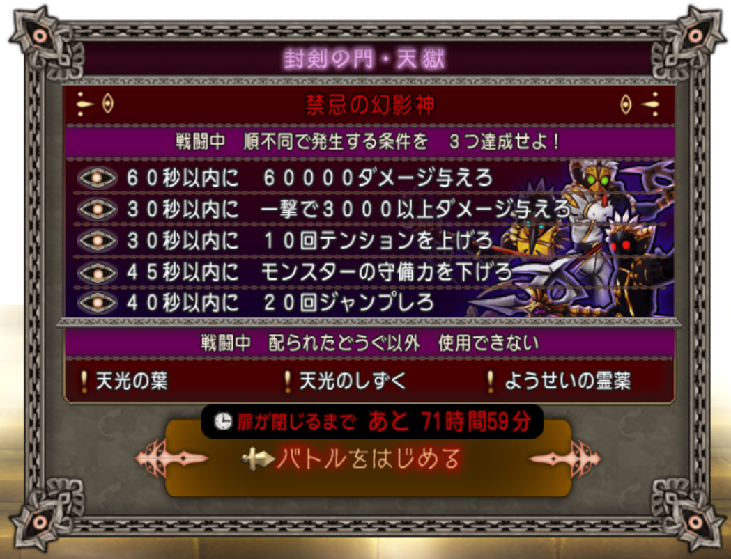 「デスマスターと行く!迅速なヘルバトラー強討伐!」はサクッとクリアできそうなのでオススメです。